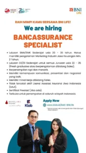 Deskripsi Pekerjaan BNI Life, anak perusahaan asuransi terkemuka di Indonesia, sedang mencari Spesialis Bancassurance –