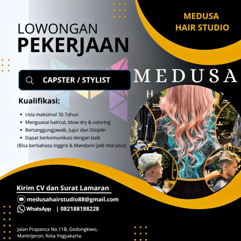 • Pengalaman: Minimal 1 tahun di bidang salon, termasuk pengalaman potong, smoothing, coloring, serta nail art & eyelash extension.