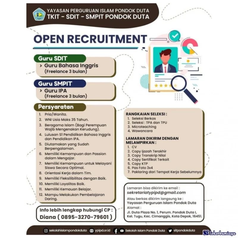 - Pengalaman mengajar di sekolah Islam menjadi nilai tambah, namun fresh graduate dipersilakan.