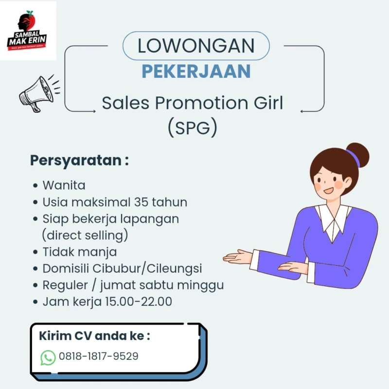 - Pengalaman kerja minimal 1 tahun di bidang sales promotion, retail, atau layanan pelanggan.