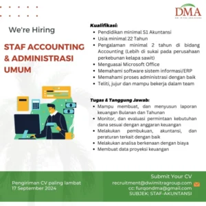PT. Bumi Sejahtera, salah satu perusahaan terkemuka di bidang properti dan infrastruktur, sedang mencari Akuntan
