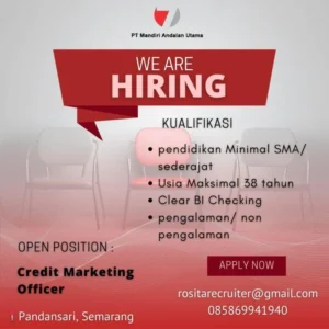 Adira Finance, perusahaan pembiayaan terkemuka di Indonesia, sedang mencari Credit Marketing Officer (CMO) untuk mengisi