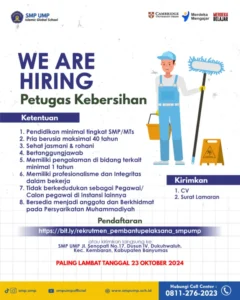 PT. Bersih Sejahtera, perusahaan layanan kebersihan terkemuka di Indonesia, sedang mencari tenaga kerja yang berdedikasi