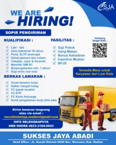 PT JNE Express, salah satu perusahaan logistik terkemuka di Indonesia, sedang mencari Supir Operasional yang